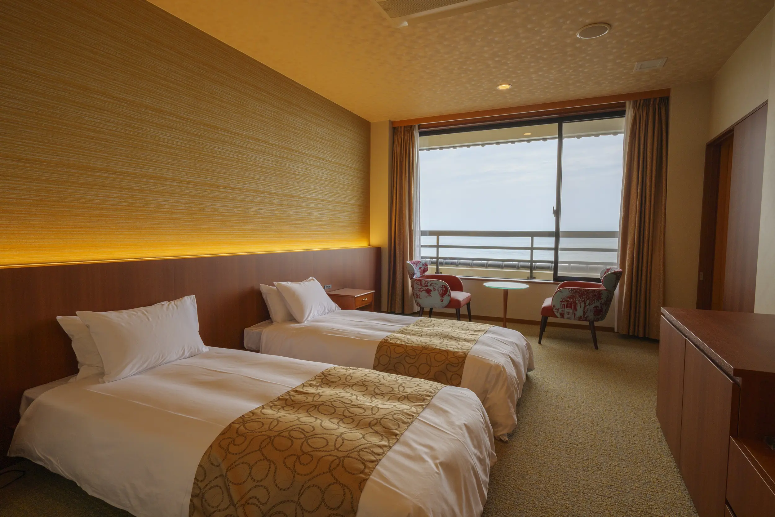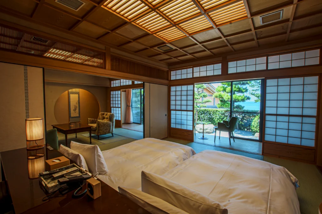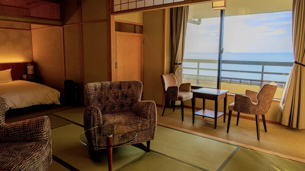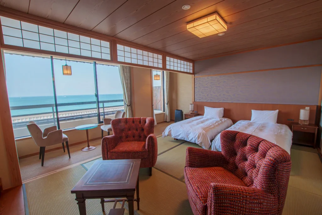 时尚西式客房,布局实用。从客房尽情欣赏入选「日本百景」的濑户内海壮丽日落美景。您可以在客房内的桧木浴池,或是在「洗心之汤」的大浴池里享受悠然调和身心的住宿时光。